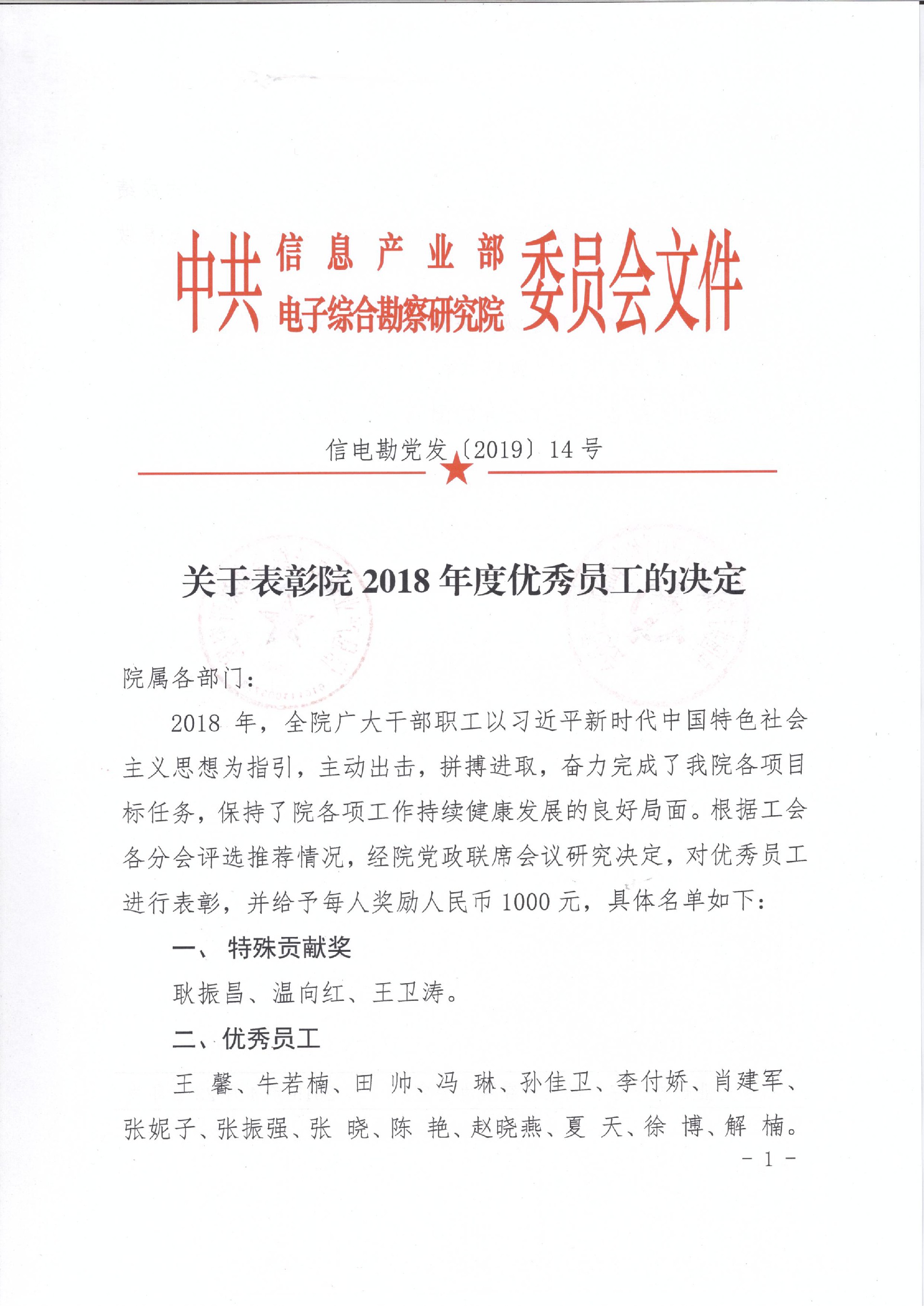 關(guān)于表彰院2018年優(yōu)秀員工的決定
